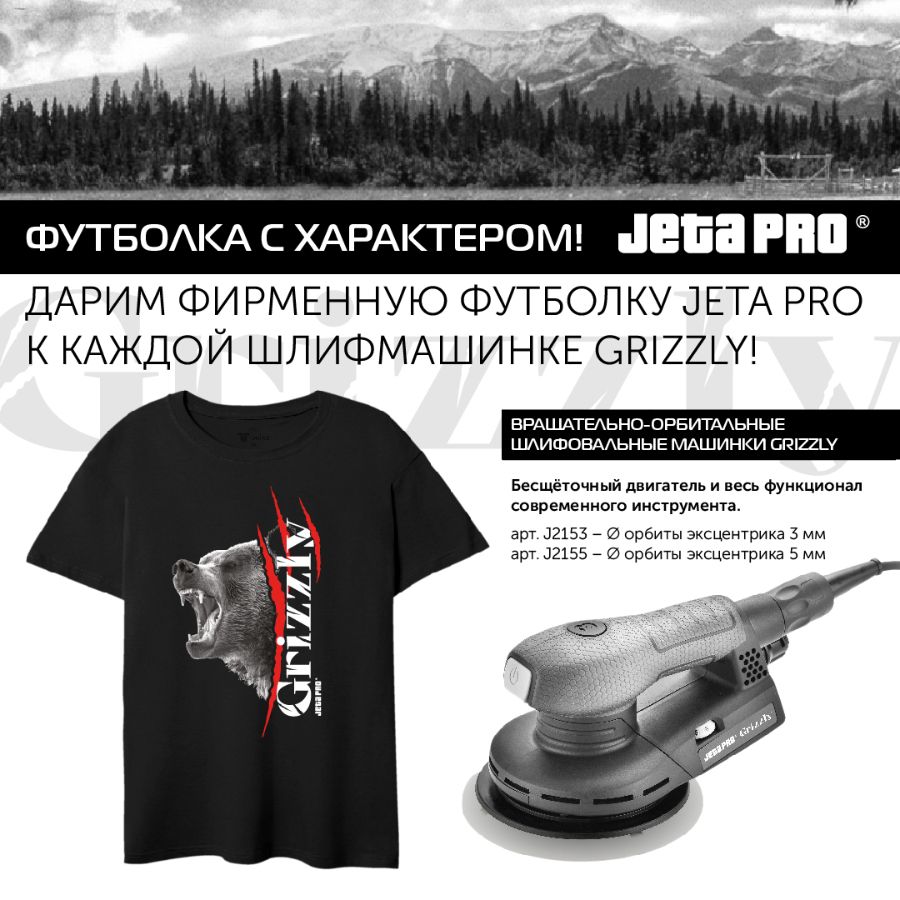 Дарим классную фирменную футболку JETA PRO с медведем к каждой шлифмашинке Grizzly!